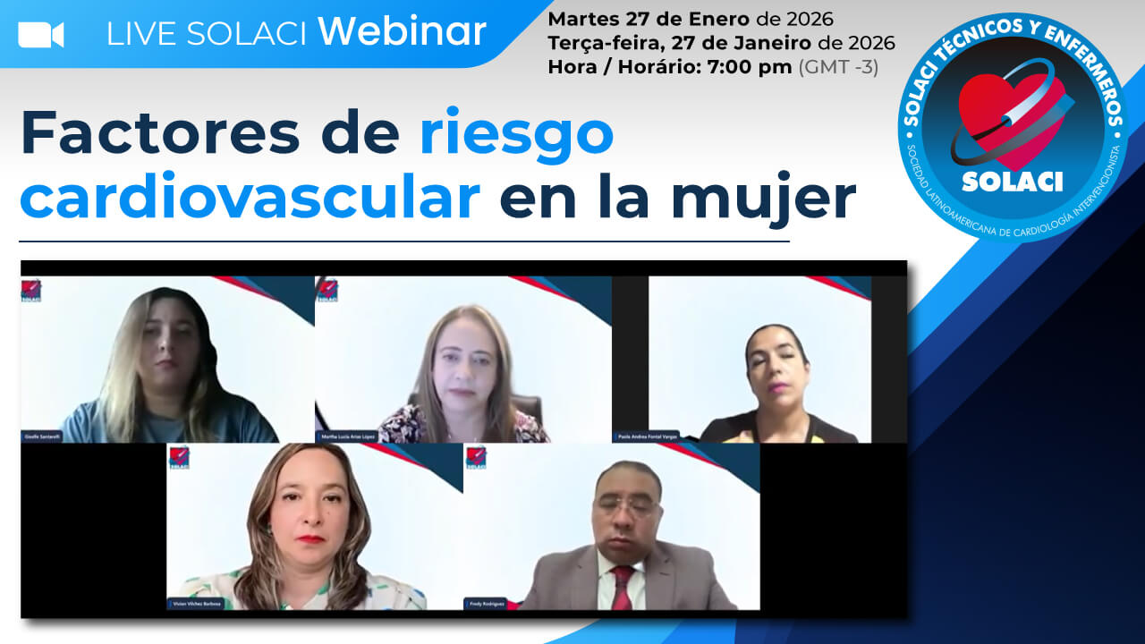 Ya se encuentra disponible para su visualización en el canal de YouTube de SOLACI el webinar «Factores de riesgo cardiovascular en la mujer», realizado el pasado 27 de enero de 2026 a través de la plataforma Zoom.