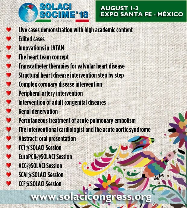 The Latin American Society of Interventional Cardiology (SOLACI) invites the community to the 5th International Conference on Clinical and Interventional Cardiology (Coronary and Structural),...