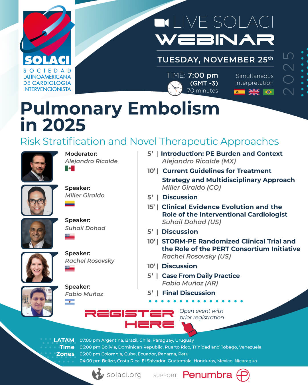 Our webinar “Pulmonary Embolism in 2025: Risk Stratification and Novel Therapeutic Approaches” is now available to watch. The session took place on November 25, 2025, via Zoom, with the support of Penumbra.