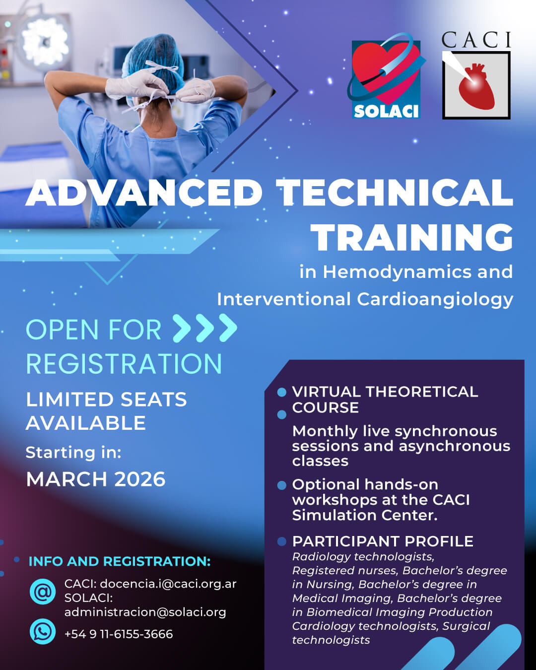This training program represents a valuable opportunity to update knowledge, acquire practical skills, and enhance professional performance within the interventional cardiology team, supported by the academic endorsement of SOLACI and CACI.